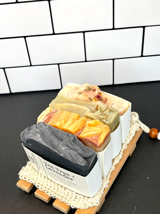 4 Pack Soap Bundle with Exfoliating Soap Bag and Soap Dish